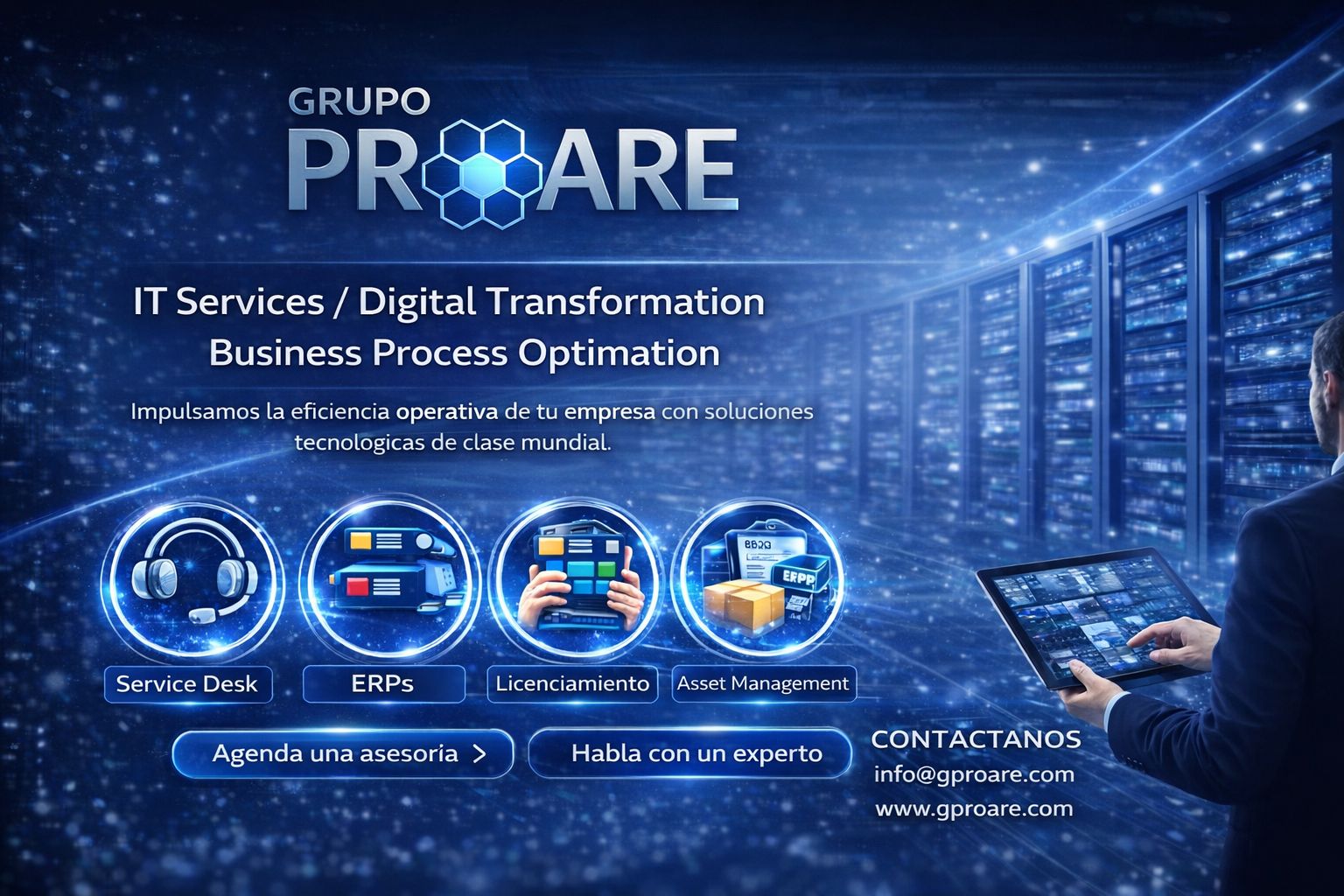 Hardware, Software, Telecomunicaciones, Acometida Eléctrica, ACC, Video Vigilancia, Voz y Datos